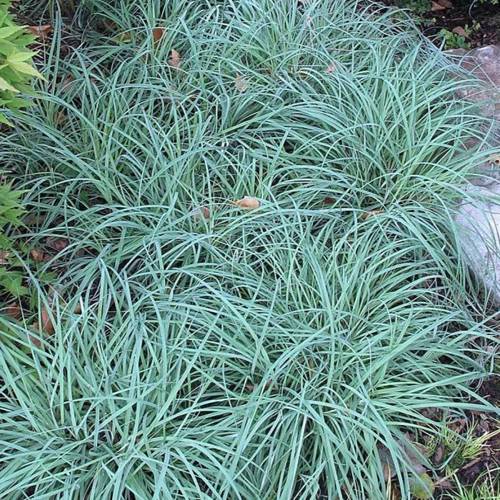 Компактная крона достигает 30–40 см в высоту и до 60 см в ширину, легко разрастается в дернину, создавая ковёр с холодным, металлическим оттенком. Листья узкие, поникающие, серо-голубые, устойчивы к выгоранию и не теряют декоративности даже в затяжной тени. Сезонный цикл ярко выражен: на старте весны — насыщенный голубой цвет, к лету — приглушённая сизость, осенью — графичная структура.