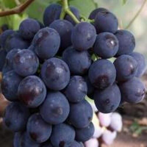 Виноград ценится садоводами за стабильность и товарный вид. Виноград Рошфор описание которого подчеркивает его высокую энергию роста, формирует крупные округлые ягоды темно-синего цвета. Средний вес ягоды колеблется от 6 до 10 граммов, а мясистая мякоть обладает тонким мускатным ароматом.